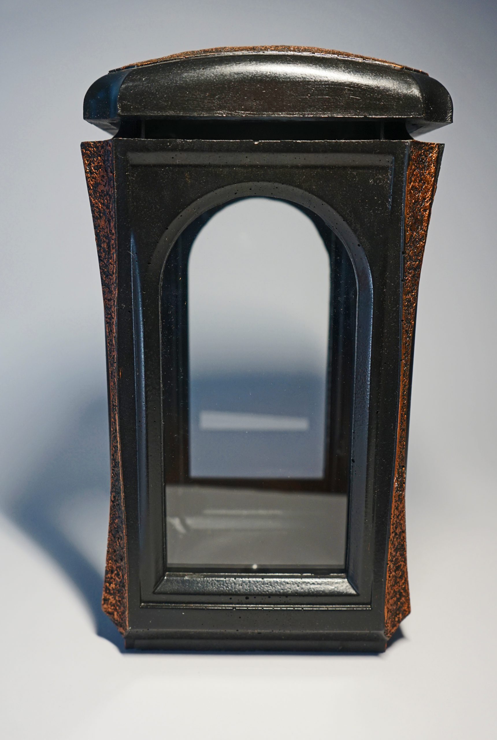 Czarno – miedziany znicz żywiczny lampion retro