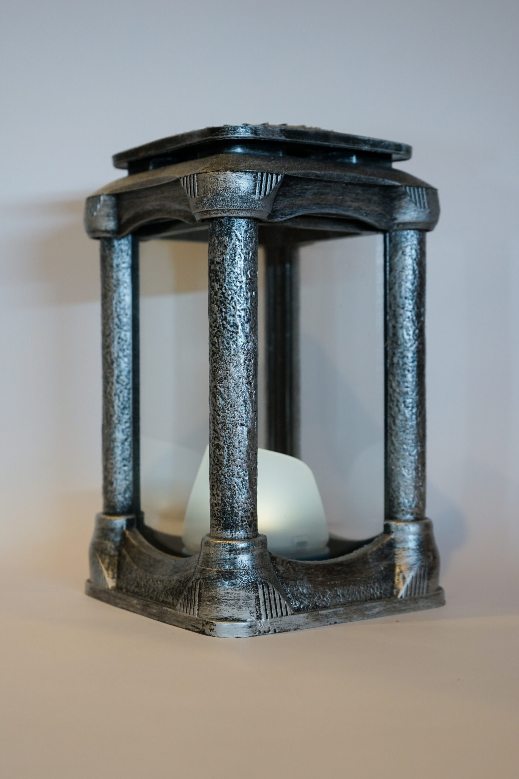 Elegancki, srebrny znicz w formie klasycznej kapliczki, wykonany z wysokiej jakości żywicy i szkła. To produkt o wyjątkowej trwałości, który pięknie łączy tradycyjny styl z ponadczasową elegancją.